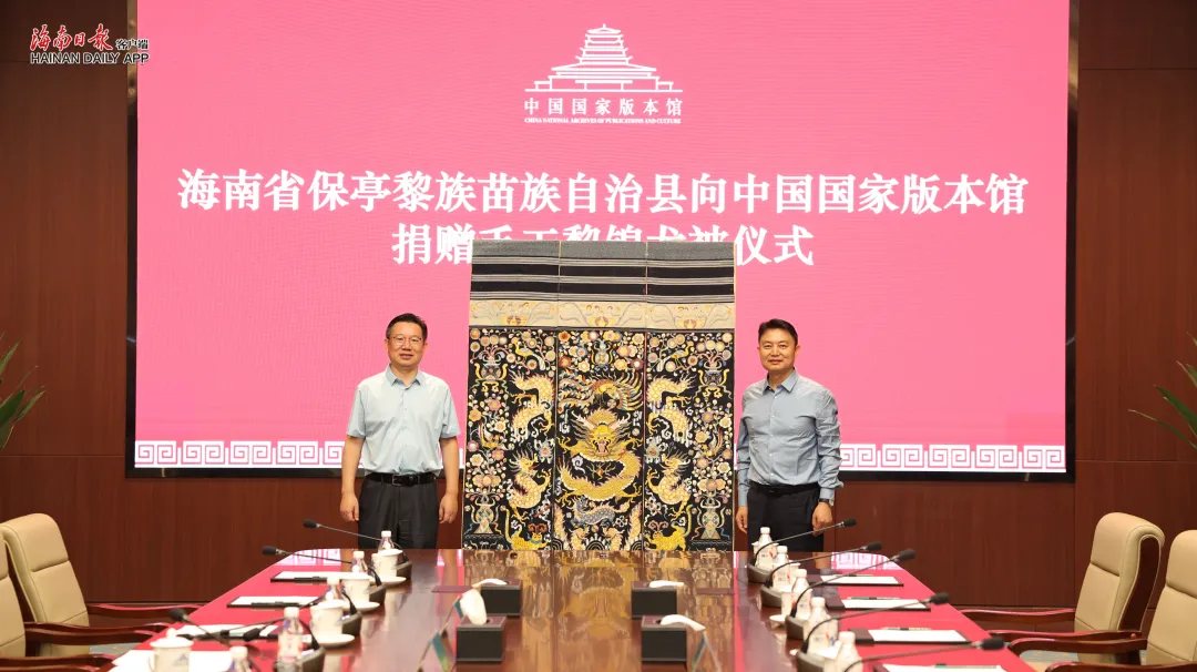海南非遗代表作入藏“中华文化种子基因库”!9月12日,海南保亭黎族苗族自治县向中国国家版本馆捐赠手工黎锦龙被仪式在北京举行。中宣部版权管理局、中共海南省委宣传部有关负责同志一同参加入藏仪式。