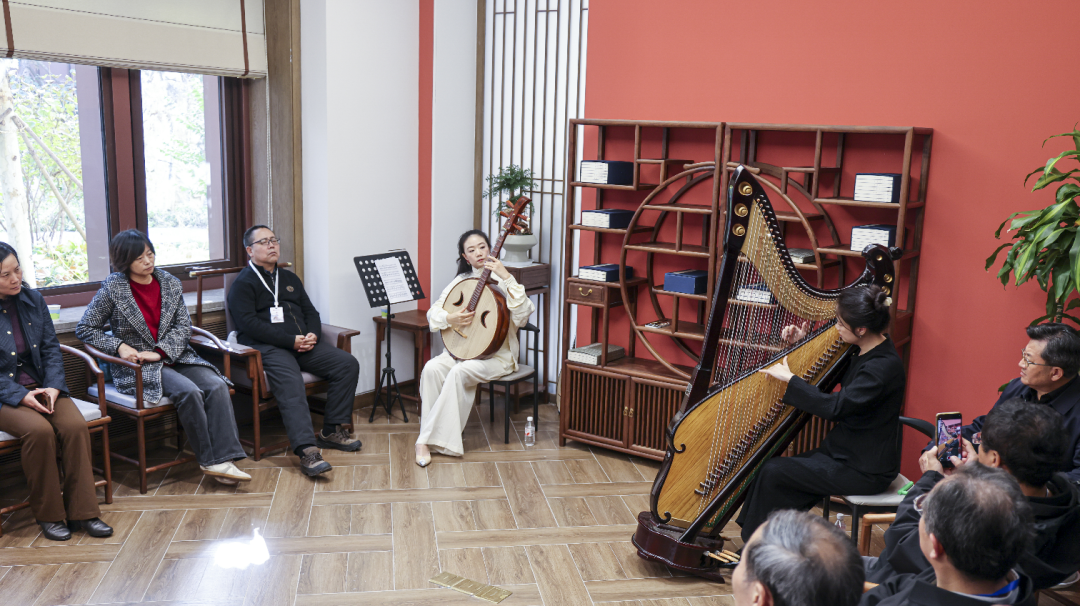 雅集活动中,李义敏、田忠恩分别向中国国家版本馆捐赠研究成果,黄清海向中国国家版本馆捐赠藏品。演奏家在活动现场演奏中阮、箜篌,进行传统技艺展示。