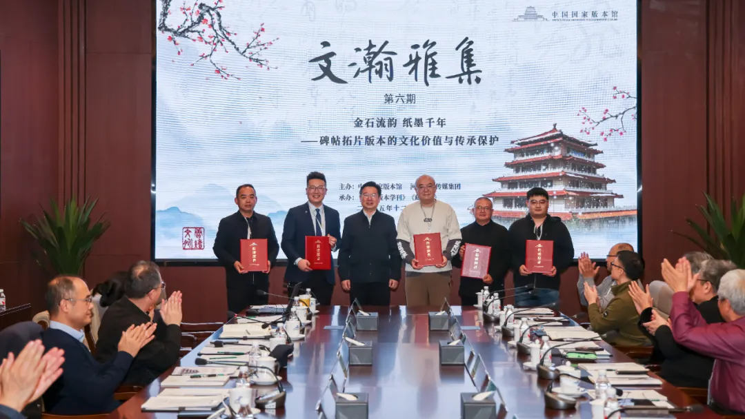 “文瀚雅集”由中国国家版本馆与河北出版传媒集团联合打造,《中华版本学刊》《藏书报》共同承办。自2024年6月双方建立战略合作以来,已成功举办六期。活动通过“版本鉴赏、技艺展示、座谈交流”多元模式,搭建起学术研究、收藏交流与文化传播平台,内容越来越丰富,涉及领域越来越广泛,有效推动了版本资源整合与研究出版深化,为中华优秀传统文化传承发展注入持续活力。